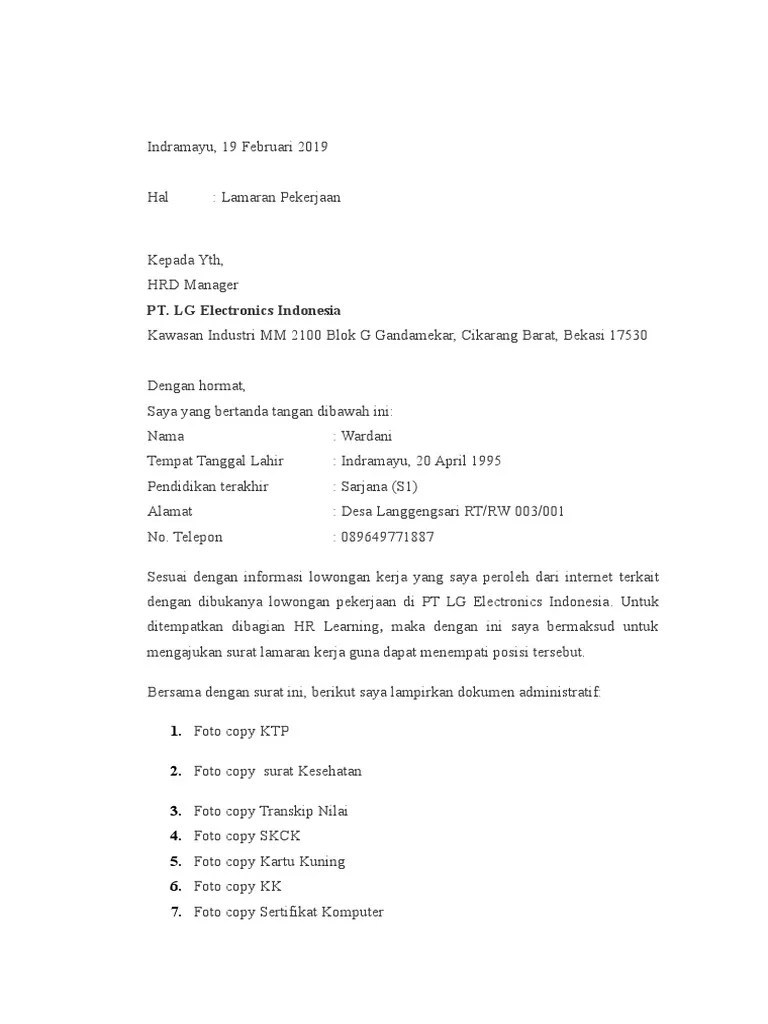 Contoh surat lamaran kerja pt freeport indonesia have a graphic associated with the other.contoh surat lamaran kerja pt freeport indonesia it also will feature a picture of a kind that may be observed in the gallery of contoh surat lamaran kerja pt freeport indonesia. Lowongan kerja pt taewon indonesia cikarang. Pin di contoh surat lamaran kerja. Contoh surat lamaran kerja operator produksi. 37 contoh surat lamaran kerja terbaru yang baik dan benar lengkap Contoh lamaran kerja operator produksi via email. Contoh surat lamaran kerja operator produksi adalah contoh lamaran pekerjaan terbaru yang akan admin bagikan pada kesempatan ini untuk anda yang ingin melamar kerja sebagai operator produksi. 18 contoh surat lamaran kerja untuk segala posisi pasti dilirik hrd. Contoh daftar riwayat hidup operator produksi contoh hits. Contoh surat lamaran kerja di pabrik surat lamaran pekerjaan adalah surat yang ditulis oleh seseorang yang bertujuan untuk melamar suatu pekerjaan. Kelengkapan documen dan cara penulisan yang benar menjadi kunci di terimanya anda dalam melamar pekerjaan. Yang notabenenya tidak mengharuskan lulusan perguruan tinggi jika melamar dibagian operator produksi. Contoh surat lamaran kerja operator produksi contoh surat lamaran.